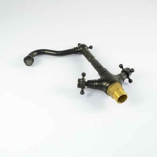 Copper Bathroom Sink Faucet,Black Deck Mounted Rotatable Faucet Set,Oil-rubbed Two Handles One Hole Bath Taps with Hot and Cold Switch