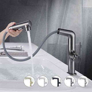 Pull Out Bathroom Sink Mixer Faucet, 360 swivel Pull Down Sprayer Basin Tap Brass, 2 Water Flow Modes with Rotating Spout, Single Handle Washroom Water Tap with Cold Hot Hose Pull Out Bathroom Sink Mixer Faucet, 360 swivel Pull Down Sprayer Basin Tap Brass, 2 Water Flow Modes with Rotating Spout, Single Handle Washroom Water Tap with Cold Hot Hose
