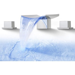 Bathroom Waterfall Faucet Widespread 8 Inch Modern Moon 3 Hole Lavatory Sink Faucet 3 Color LED Vanity Faucet with Two Handle, SKOWLL Polished Chrome