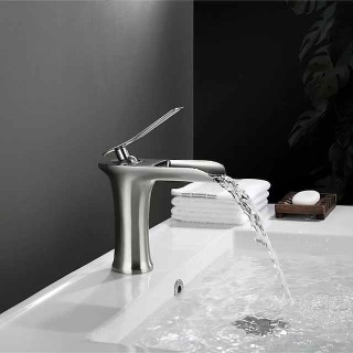 Bathroom Sink Faucet, Brass Waterfall Single Handle One Hole Modern Style Bath Taps with Hot and Cold Water Bathroom Sink Faucet, Brass Waterfall Single Handle One Hole Modern Style Bath Taps with Hot and Cold Water