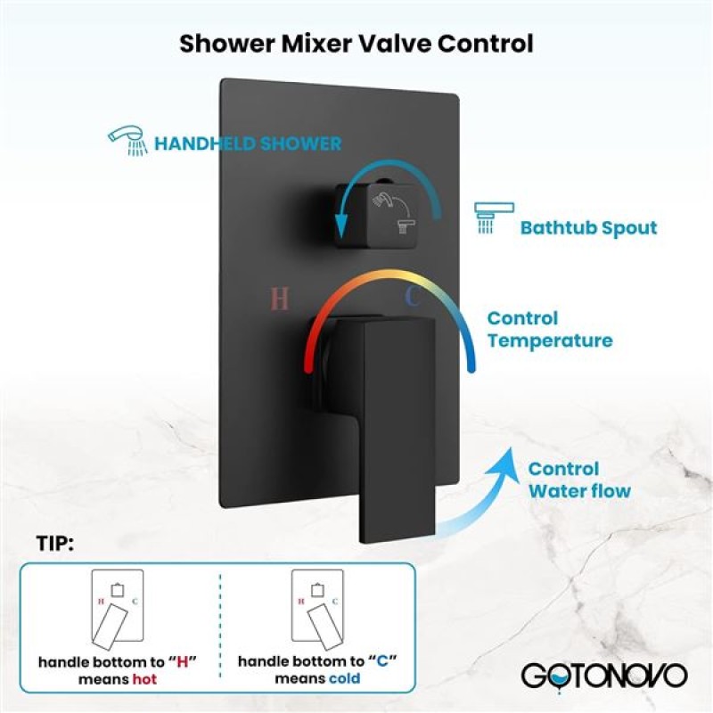 - 【Rough-in Valve】:The advanced pressure balanced ceramic disc cartridge with cUPC certification can prevent scald injury caused by sudden changes in the pressure of hot or cold water.