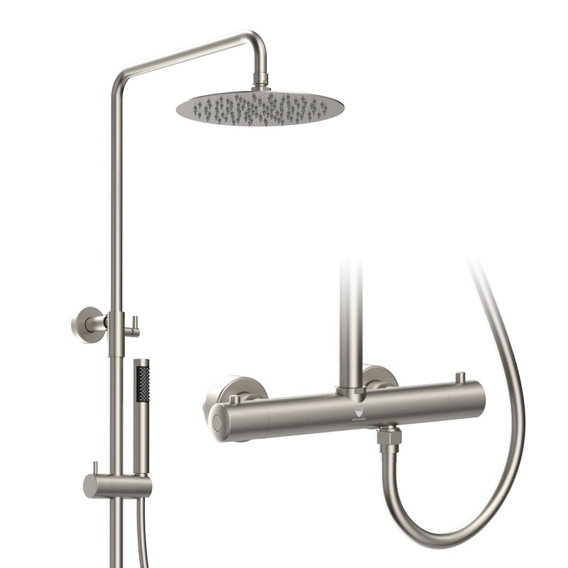 This HIMARK shower column features a thermostatic valve for precise temperature control, along with 2 shower functions for a luxurious and personalized shower experience. The exposed design makes it easy to install and adds a modern touch to any bathroom.