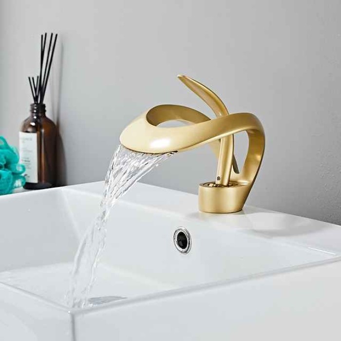 Type: Bathroom Sink Faucet+ Accessories, Style: Modern Contemporary, Features: Waterfall, Faucet Type: Bathroom Sink Faucet, Installation Type: Centerset, Number Of Handles: Single Handle, Cold and Hot Switch: Yes, Valve Type: Ceramic Valve, Finish: Painted Finishes, Installation Holes and Handles: Single Handle One Hole,