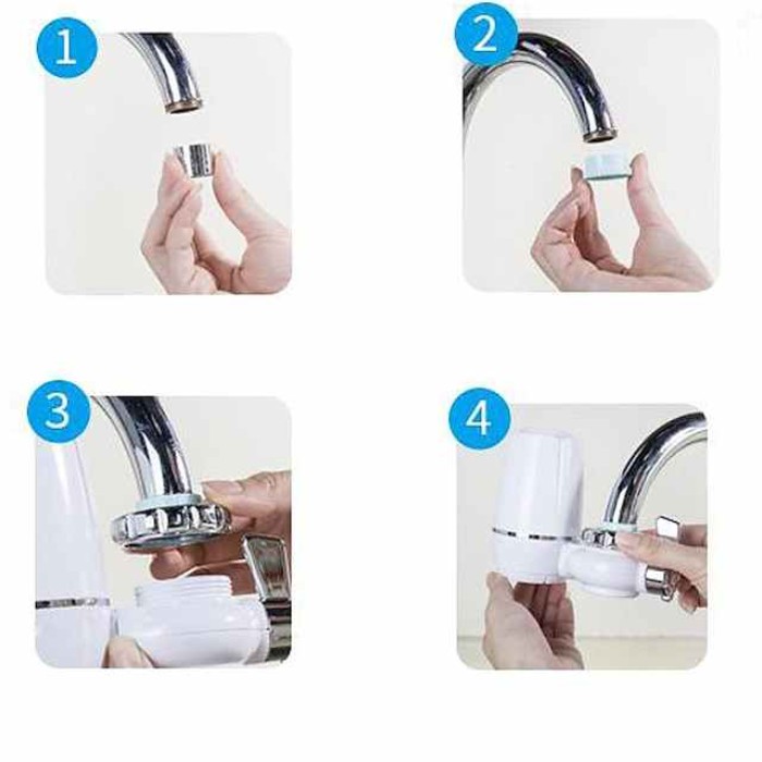 Faucet Water Filter System Replacement, 4 Stage Water Filtration System, Tap Water Filter ABS Sprayer Head Nozzle, Reduces Chlorine, Heavy Metals and Bad Taste