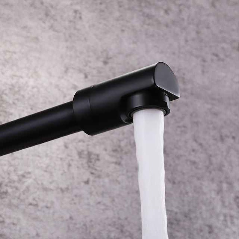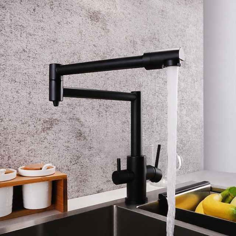 Kitchen Faucet,Foldable Single Handle One Hole Electroplated Pot Filler Centerset Modern Contemporary Kitchen Taps(Black/Brush Nickel)