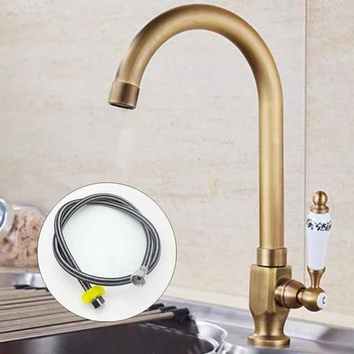 Kitchen Sink Faucet Retro Brass, 360 ° Swivel Single Handle Cold Taps One Hole Lever Ceramic Valve Tap Antique Vintage Bronze