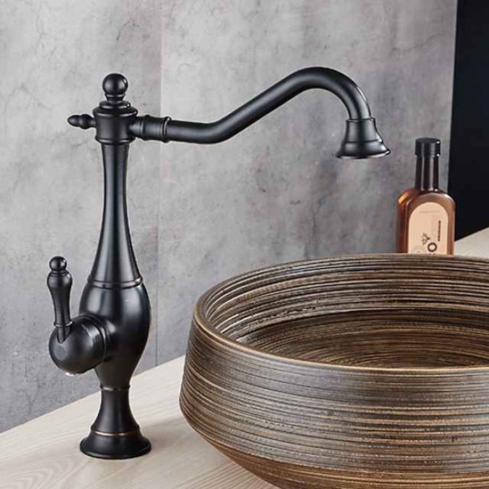Kitchen Faucet,High Arc Single Handle One Hole Rotatable Standard Spout Retro Kitchen Taps(Antique Brass/ORB)