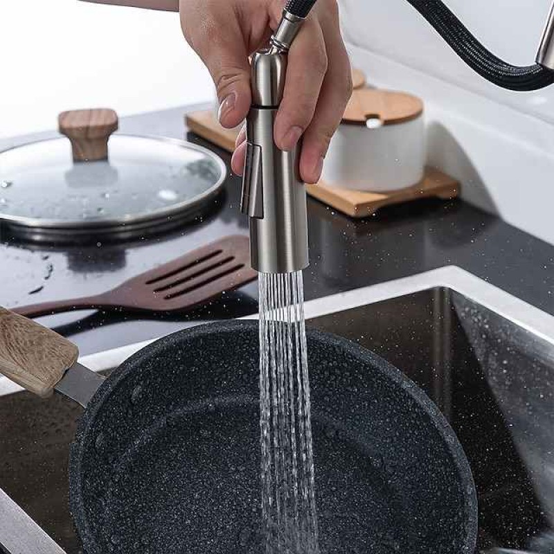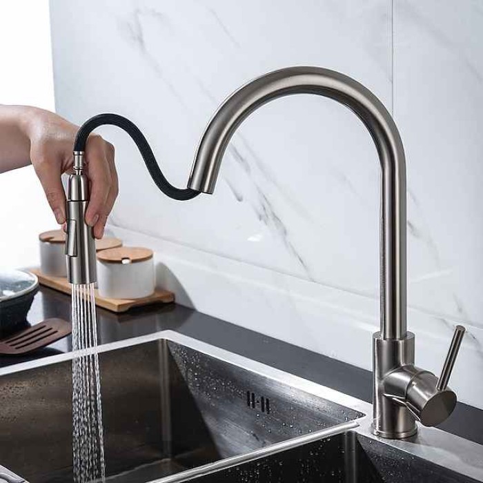 Kitchen Faucet with Pull-out Spray,Single Handle One Hole 2-modes Brass Kitchen Taps