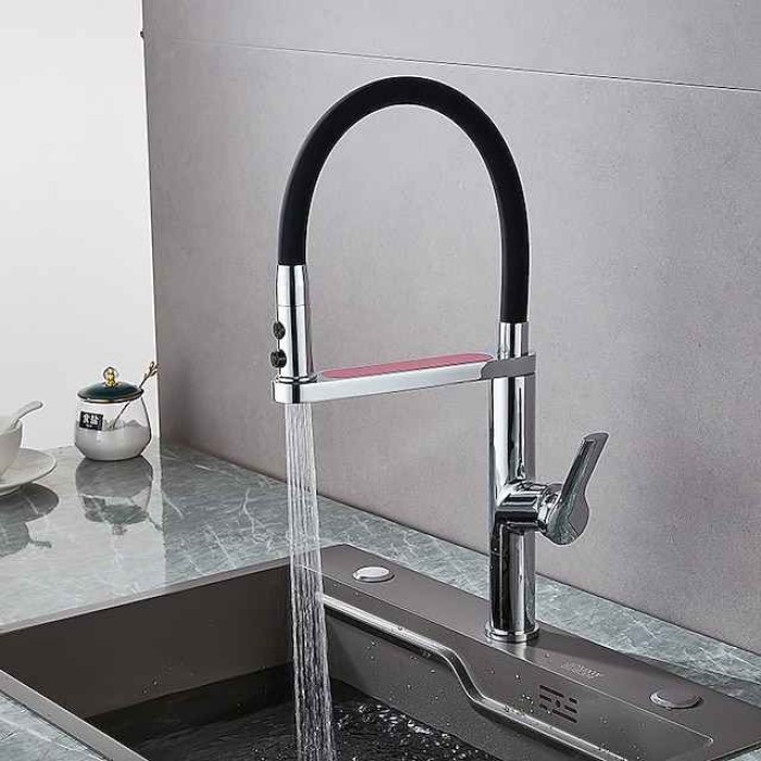Kitchen Faucet Pull Donw, 360 Swivel Single Handle Sink Mixer Taps, Kitchen Vessel Tap with Hot and Cold Water Hose