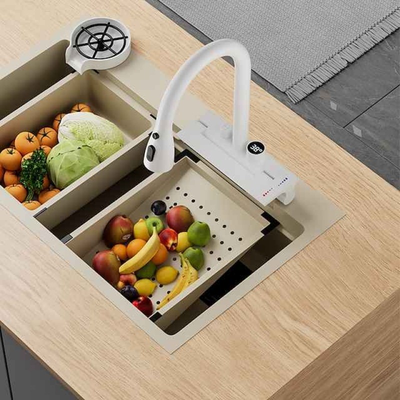 Waterfall Kitchen Faucet Pull Out Sink Mixer Vessel Taps, withCold and Hot Hose