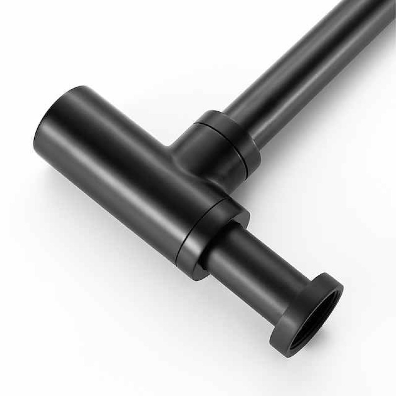 Bathroom Brass Contemporary Round Bottle P Trap Lavatory Adjustable Basin Sink Waste Drain P-Trap Kit with Pop up Drain(Silvery,Black)