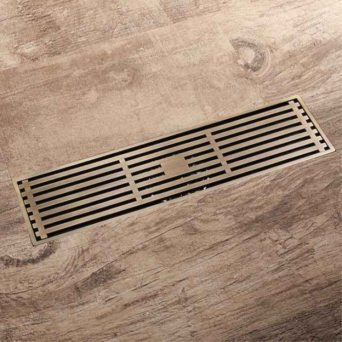 12 Inch Rectangular Linear Shower Drain Bath Floor with Brick Pattern Grate, Brushed Brass Bathroom Floor Drain, Shower Floor Drain Includes Hair Strainer