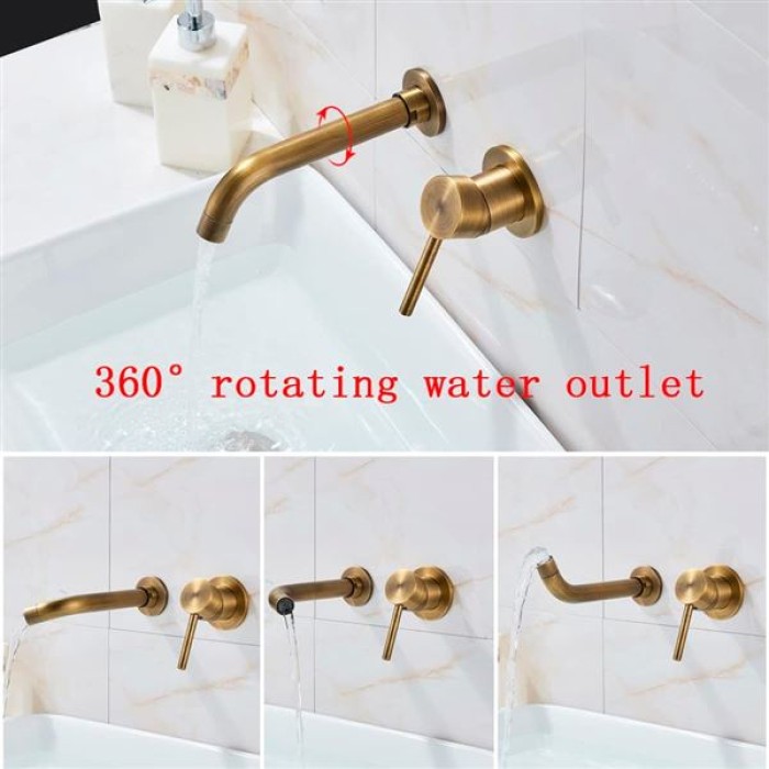 Wall Mounted Bathroom Faucet,Basin Tap with 360 Degrees Rotating Spout,Single Handle,Wall Mounted Bathroom Sink Tap,Antique(Antique)