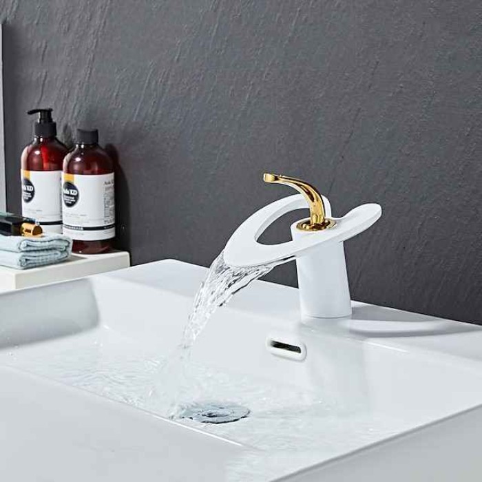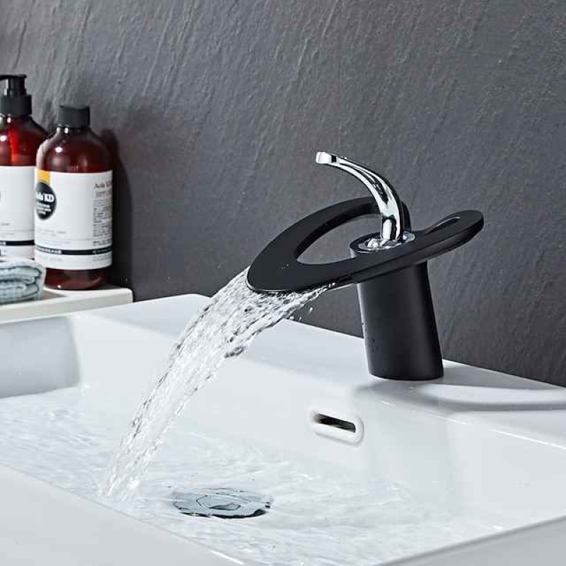 Bathroom Sink Faucet - Waterfall Electroplated Centerset Single Handle One HoleBath Taps