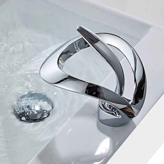 Bathroom Sink Faucet, Modern Waterfall Electroplated, Painted Finishes Mount Outside Single Handle One Hole Bath Taps