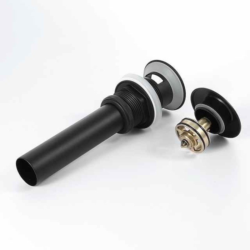 Faucet Accessories-Pop Up Drain With Overflow Brass Bathroom Basin Sink Push Down Waste Matte Black Painted Finished